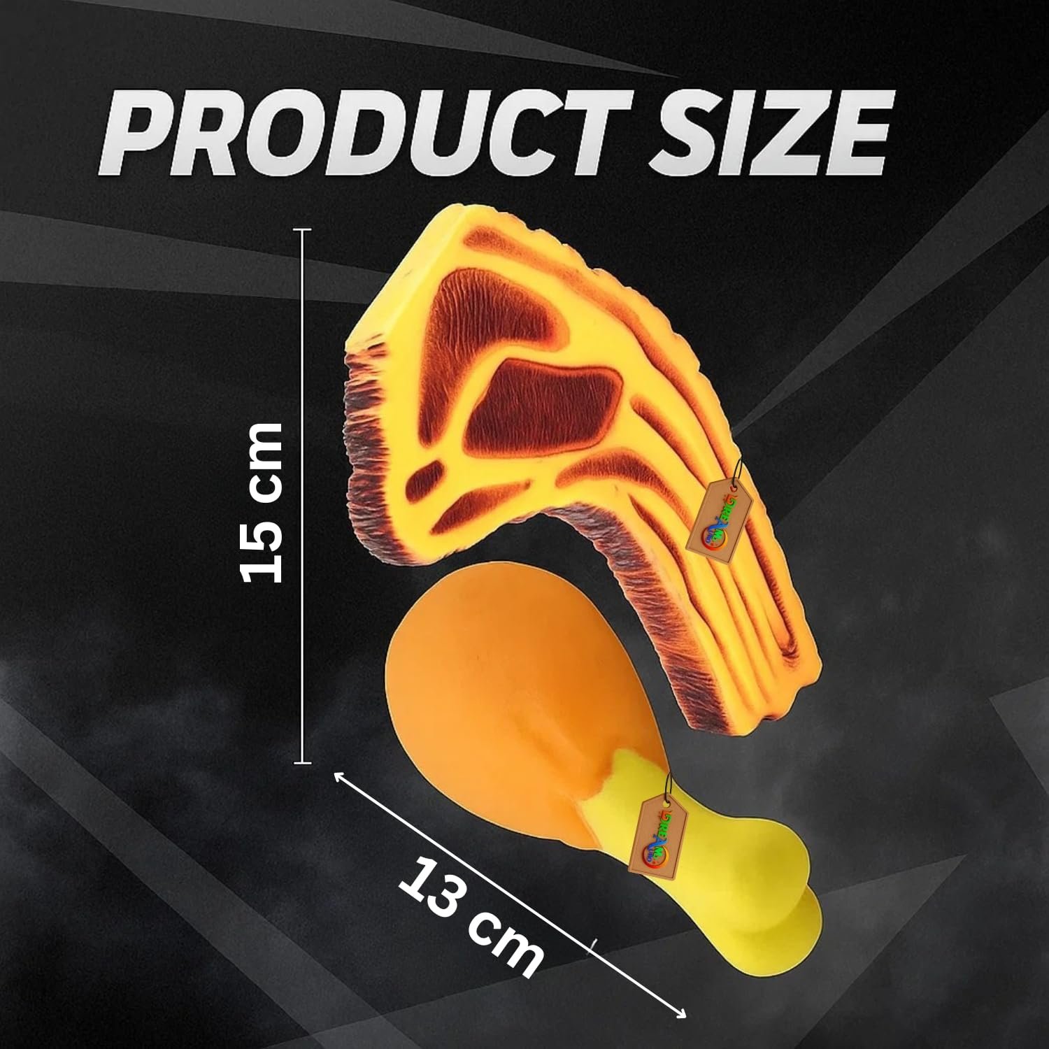 Meat Piece & Chicken Leg Squeaky Toy Combo combines two novelty designs for maximum fun. The meat piece adds a realistic chew-style toy, while the chicken leg offers a humorous, cartoon twist to playtime that both pets and owners will love. Each toy comes with a built-in squeaker that produces exciting sounds when bitten, capturing your pet’s attention instantly. Perfect for chewing, fetching, and solo play, these toys stimulate natural instincts and keep pets happily entertained. Crafted from soft yet chew-resistant rubber or latex, these toys withstand daily play. The materials are non-toxic and gentle on teeth, making them suitable for both puppies and adult dogs, as well as cats who enjoy pouncing and batting around toys. Built-in squeakers produce sounds that trigger pets’ natural instincts. The squeak encourages longer play sessions, reduces boredom, and helps keep pets mentally stimulated while also promoting physical activity indoors or outdoors. Chewing on these toys can help massage gums and reduce plaque buildup, supporting better oral health. The textured bone ball and soft turkey toy provide a comfortable chewing experience that’s safe for everyday play. Whether you have an energetic puppy, a playful cat, or an adult dog, this combo pack is designed for multi-pet households. The toys can be enjoyed by pets of all sizes, making them versatile and cost-effective for owners. These squeaky toys provide comfort and entertainment, helping to reduce stress and separation anxiety in pets. The playful sounds and textures distract pets from destructive chewing habits on shoes, furniture, or other belongings.